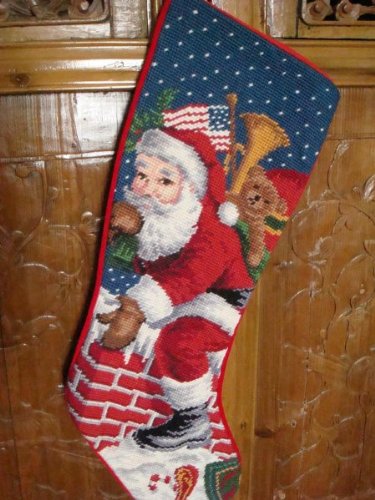 Gorgeous Handmade Christmas Wool Needlepoint Stocking N Features