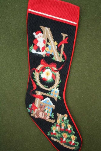 Gorgeous Handmade Christmas Wool Needlepoint Stocking N Features